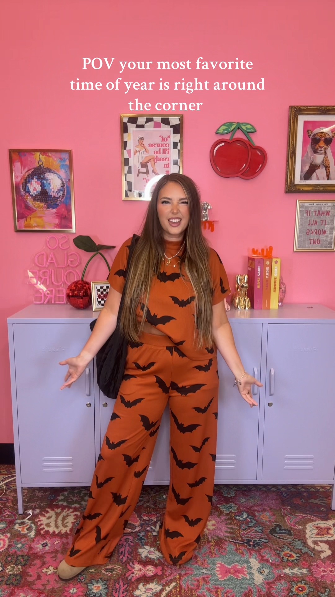Halloween Bat Print Loungewear Set – Orange 2-Piece Outfit