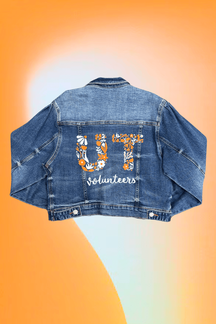 UT Floral Letters Hand Painted Balloon Sleeve Cropped Denim Jacket - Sold Out